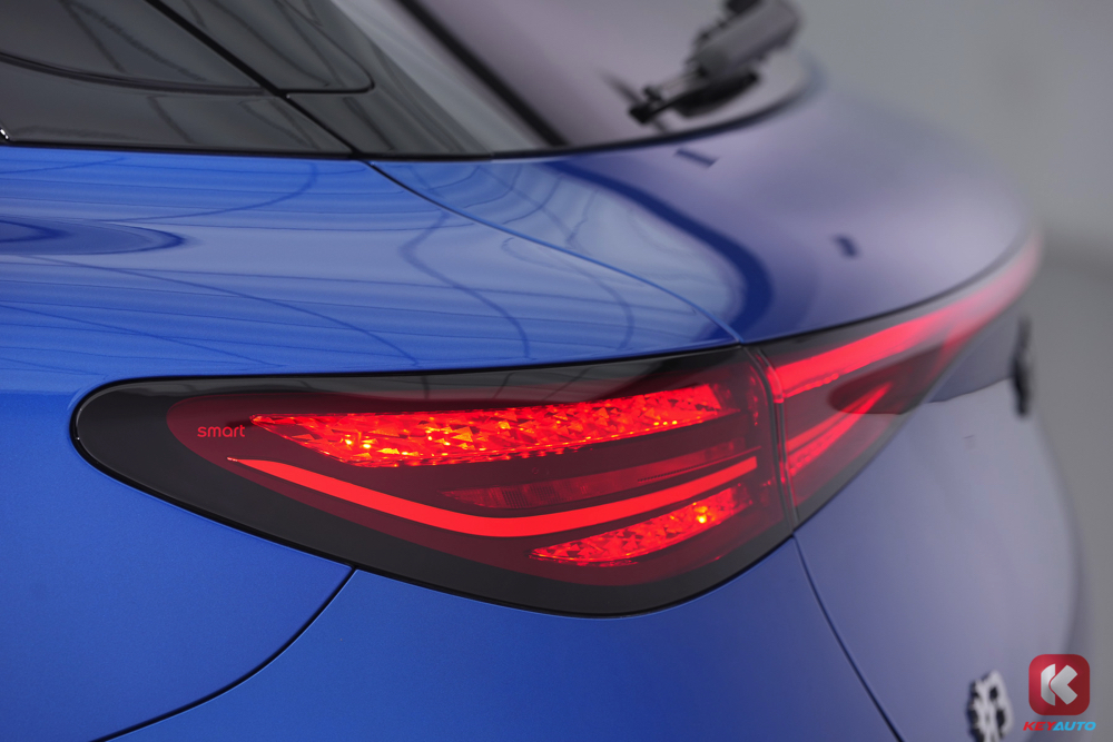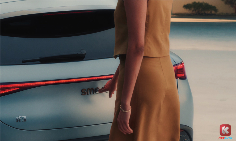smart #3 拥有时下流行的贯穿式头尾灯、低风阻轮圈、无框车门、全景天窗、车侧发光 Logo,车尾的 smart Logo 还隐藏小彩蛋,只需轻触 “a” 字即可开启尾门。