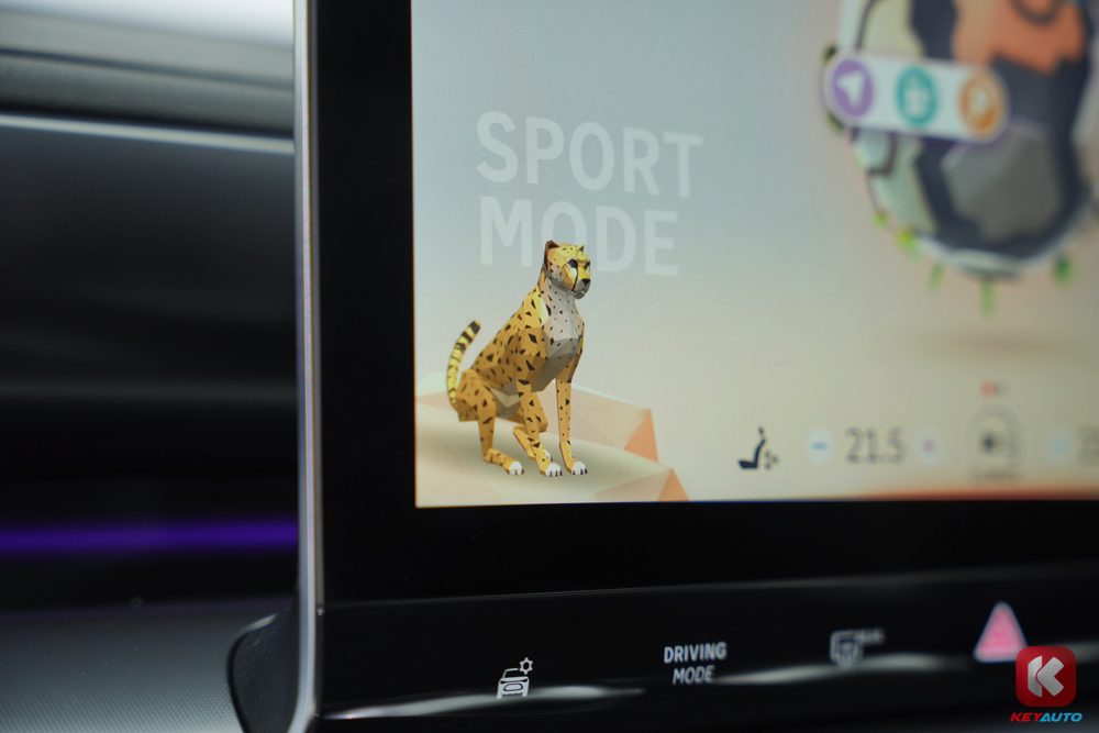 全系标配 12.8 寸中控荧幕,其内部有只 “猎豹” 小伙伴,它代表着快速、敏捷和运动,由8155 高通骁龙芯片运行,乘客们可以语音呼唤它,帮助寻找充电站、打开车窗、调节空调和等等。