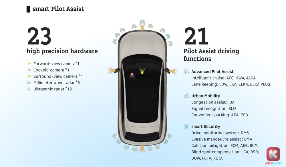 smart #3 标配的 ADAS 驾驶辅助系统,由23个高精度传感器支持,具备多达 21 项功能,包括 ACC 自动跟车、AEB 自动紧急刹车、APA 自动泊车辅助、HWA 高速公路辅助和等等,轻松应对城市拥堵、狭窄停车位、高速长途等多元场景。