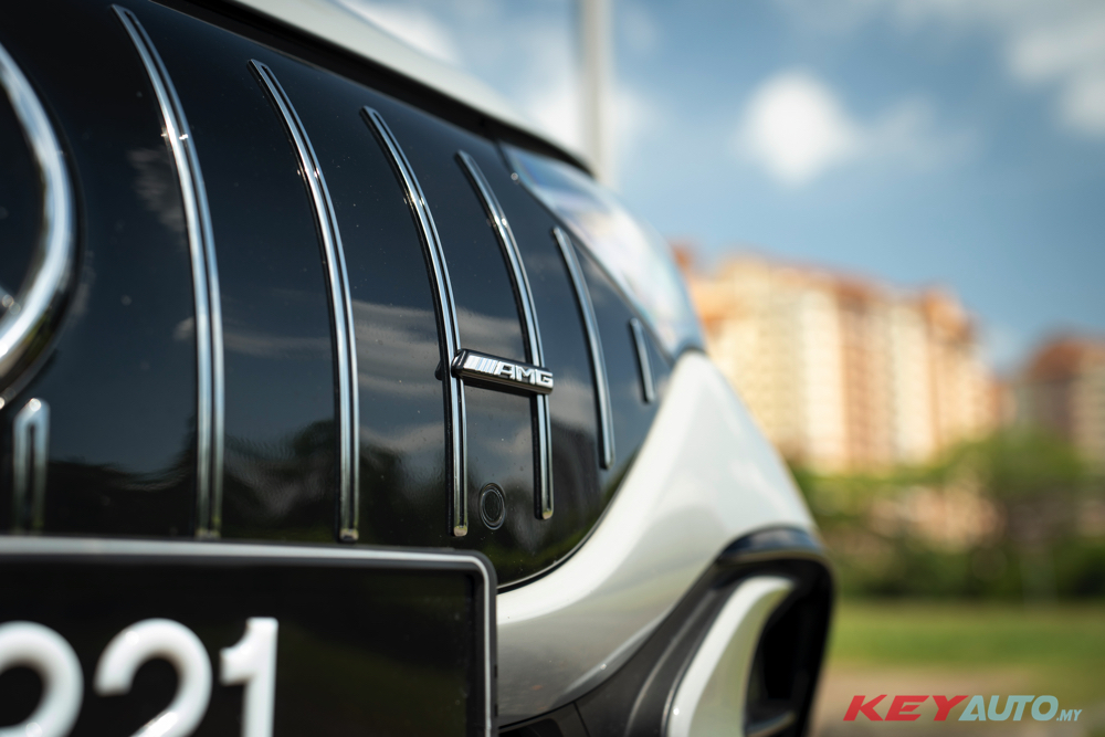 外观设计变化不大,主要是安装了 AMG 运动套件、AMG Night Package 和 AMG 标志性的直爆式水箱护罩,脚下穿着 21 吋 AMG 铝圈,配上红色刹车卡钳。