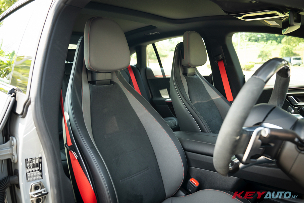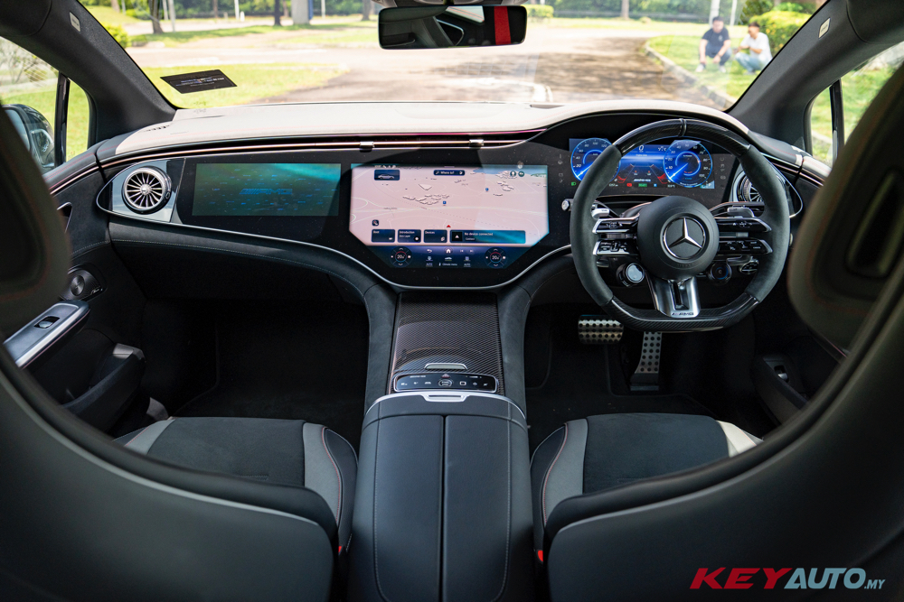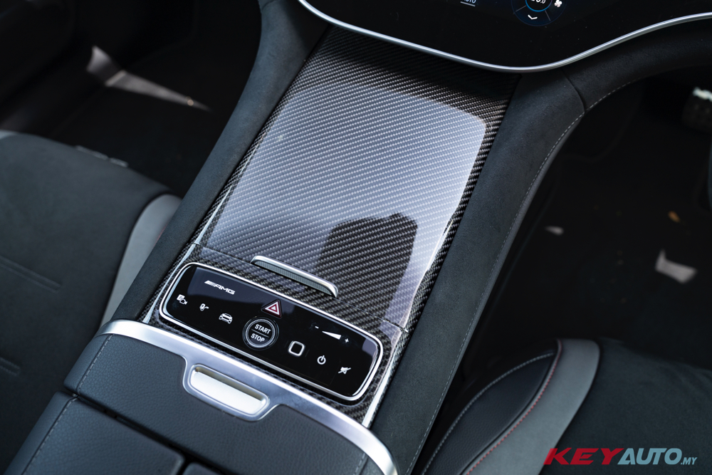 进入内装,标配超大的 56 吋 MBUX Hyperscreen、AMG 跑车座椅、AMG 专属配件、红色缝线、碳纤维饰板、以及独特的 AMG SOUND EXPERIENCE,为内装添增不少运动气息。