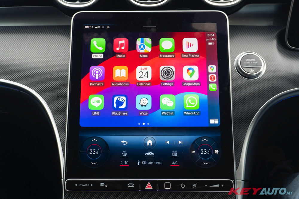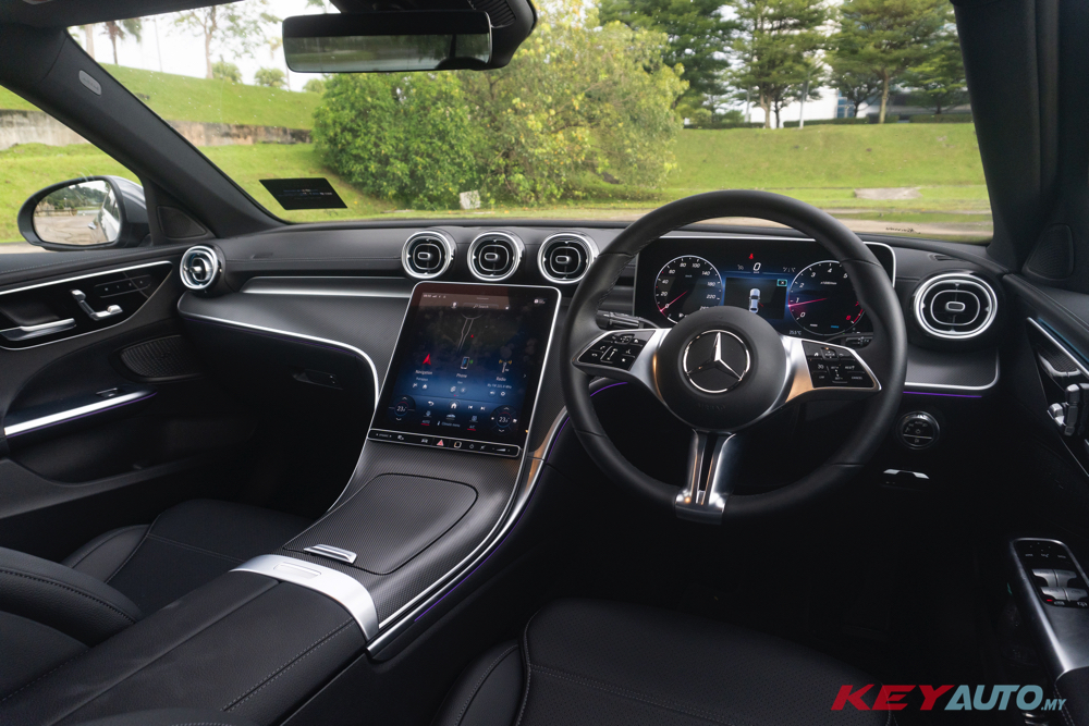 动力部分,C200 搭载 1.5L Turbo 引擎,提供 204PS/300Nm,配上 9G-TRONIC 变速箱和 48V EQ Boost 轻油电混合动力系统,0-100km/h 加速需要 7.3 秒,具备 4 个驾驶模式(Eco、Comfort、Sport 和 Individual),标配 Agility Control 电子悬吊。