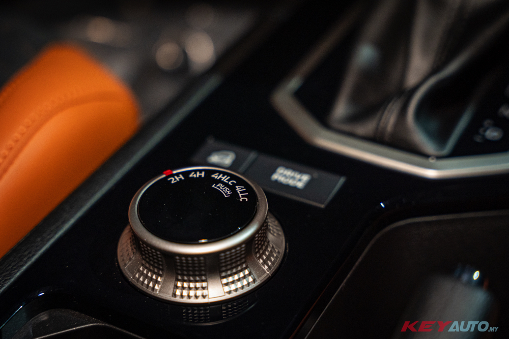 新车的 Super Select 4WD-II 备有 2H、4H、4HLc 和 4LLc 的模式可应对不同路况,同时可形成主动偏航控制(AYC),通过制动内侧前轮来提高转弯性能。车子也备有 7 种驾驶模式,包括 Eco、normal、Gravel、Snow、Mud、Sand 和 Rock。
