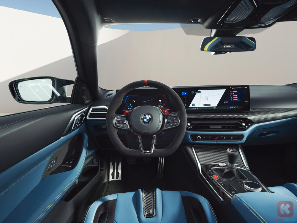 内装最吸睛便是是全新的三幅式真皮方方向盘,方向盘底部设计扁平,在12点钟设有红色的标记,更能突出车子的运动氛围。车内搭载由12.3寸数码化仪表板和14.9寸中控荧幕组成的双屏幕(内建BMW 8.5操作系统)、三幅式真皮方向盘、M Sport座椅、M安全带、16具喇叭的Harmon Kardon环绕式立体音响系统、电动调节座椅等。其他配备包括内外后视镜套件、自动防眩目功能内后视镜、comfort access系统等。