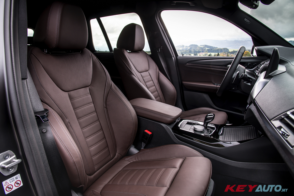 其它标准配备包括有 Vernasca 皮革内饰、前排运动座椅、M Sport 方向盘、LED 自动大灯组、气氛灯、BMW Live Cockpit Plus 和 HiFi 扬声器系统,其中 BMW X3 xDrive30e 也增加了电子悬吊系统和 Harman Kardon 环绕音响系统。