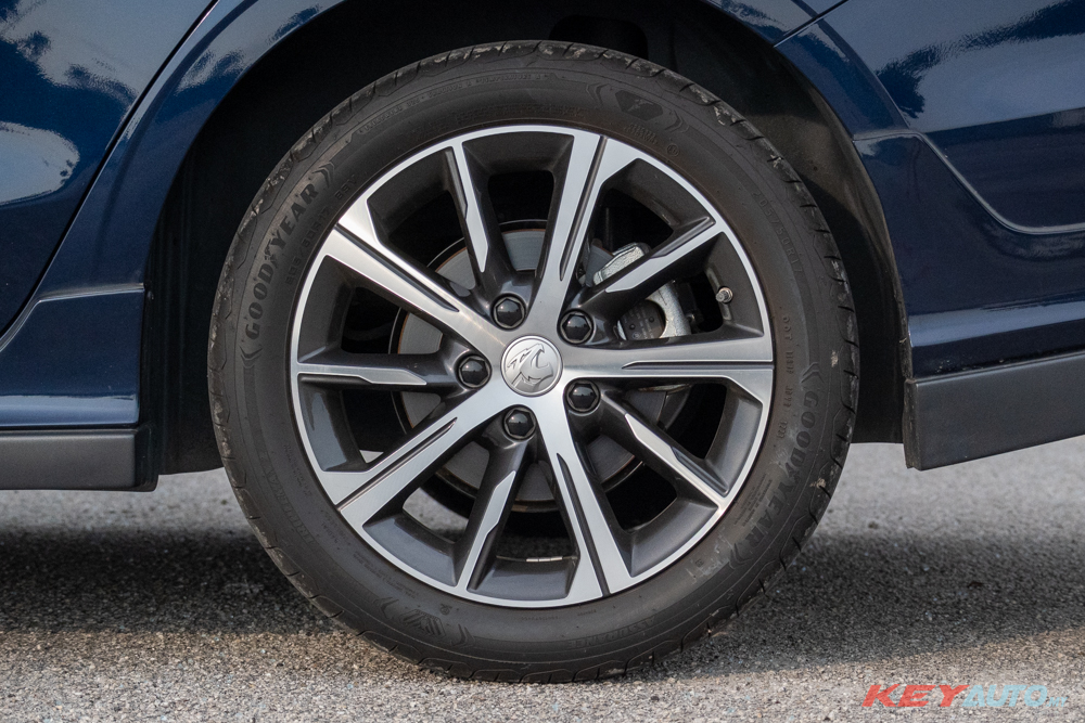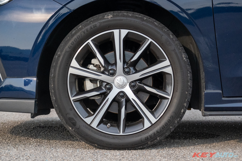 The car sits on a sets of 17-inch dual-tone alloy wheels, wrapping the wheels are a set of Goodyear assurance triple max 2 tyres. On lower specs one, the wheel size lower to 16-inch alloy.