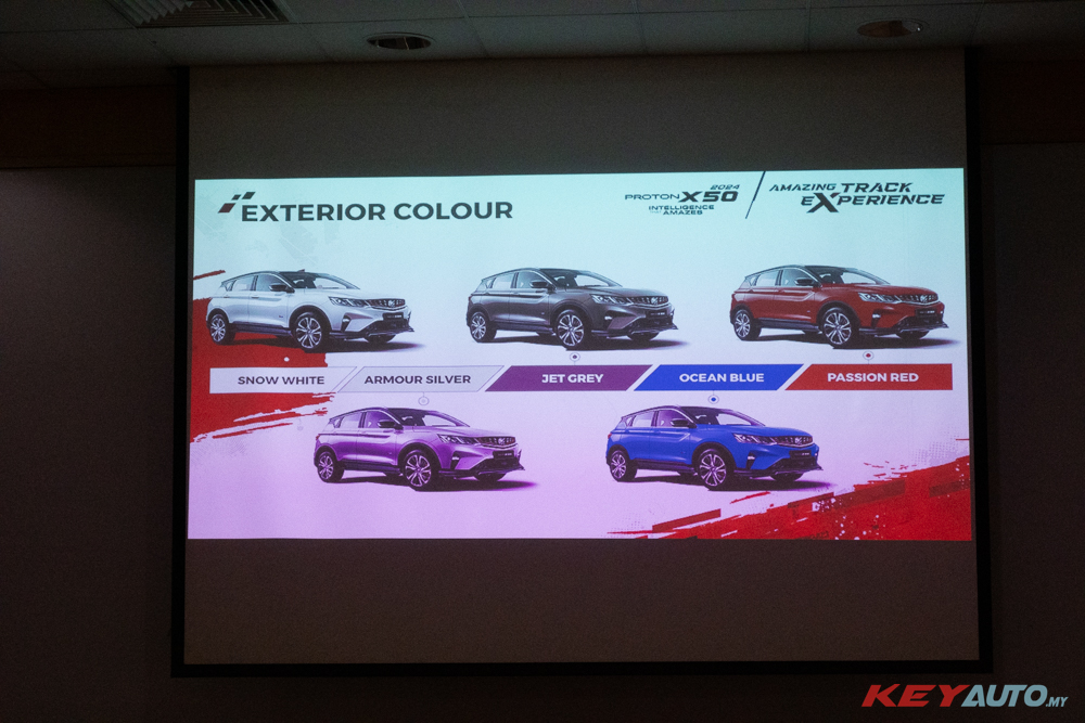 The 2024 Proton X50 comes in 5 body colour options, that includes Snow White, Armour Sliver, Jet Grey, Ocean Blue and Passion Red.