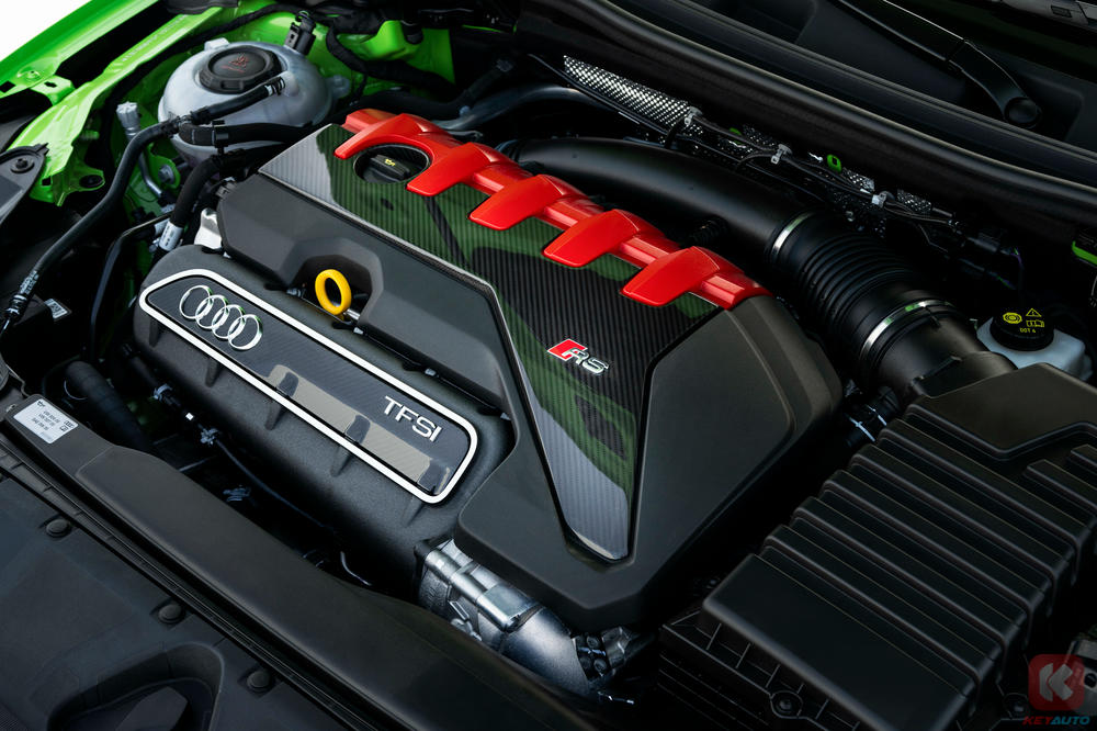 性能的部分,车子搭载的依旧是标志性的五缸引擎——2.5L 五缸涡轮增压引擎,最高马力为394匹,最高扭力500牛顿米,百里加速成绩为3.8秒,极速为290km/h。