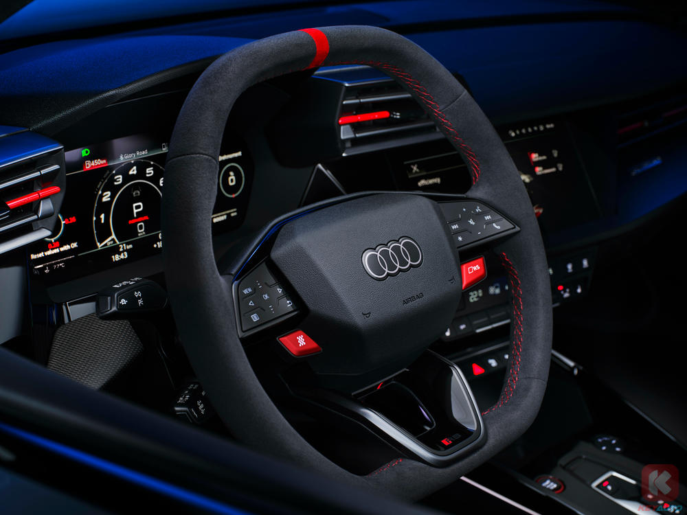 内装进行了不少提升,方向盘的顶部和底部设计变平了,并且在12点钟做出红色标记。其他选配包括碳纤维RS桶椅、全新氛围灯、中央扶手、方向盘上的对比缝线灯等等。