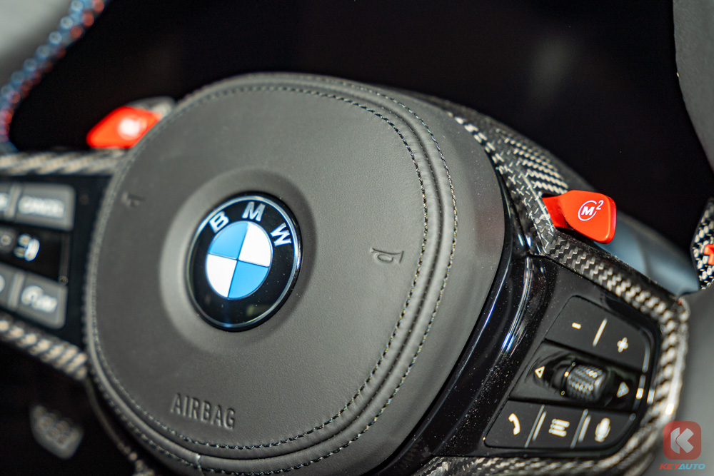 内装方面,与 M4 一样,前后座椅均是真皮包裹, M 方向盘配有 M1/M2 快捷键,家族式大曲面屏幕(12.3 寸的仪表盘和 14.9 寸的中控),BMW OS 8.5 操作系统,Apple CarPlay/ Android Auto,高功率 Harman/Kardon 音响和 M 桶椅,碳纤维饰板等等提升及提供情绪价值和日常使用体验的配备。