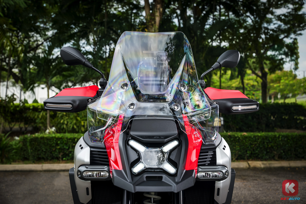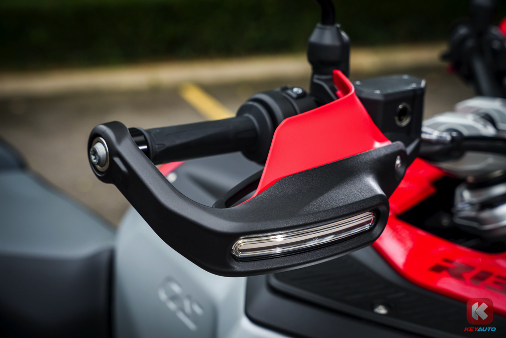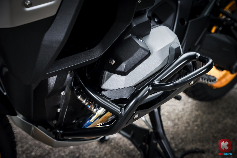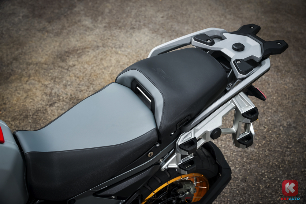 标配 37L 铝合金顶箱(承重8公斤)与双侧铝箱(总容量 73L,单侧承重 10kg),并支持 USB 充电接口与照明功能。可选装旅行套件,包括镀铬排气歧管、导航设备预装接口等,进一步提升远途便利性。