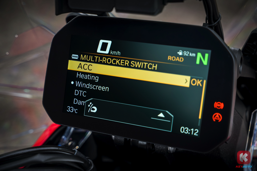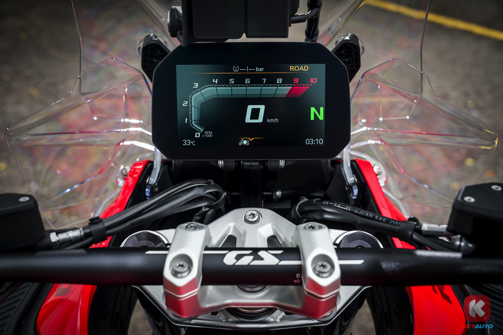 6.5 寸全彩TFT仪表支持实时显示骑行数据,并可通过 BMW Motorrad APP 实现手机互联,提供导航、车辆状态监控等功能。标配无钥匙启动、加热手把、胎压监测及定速巡航,长途骑行更轻松。