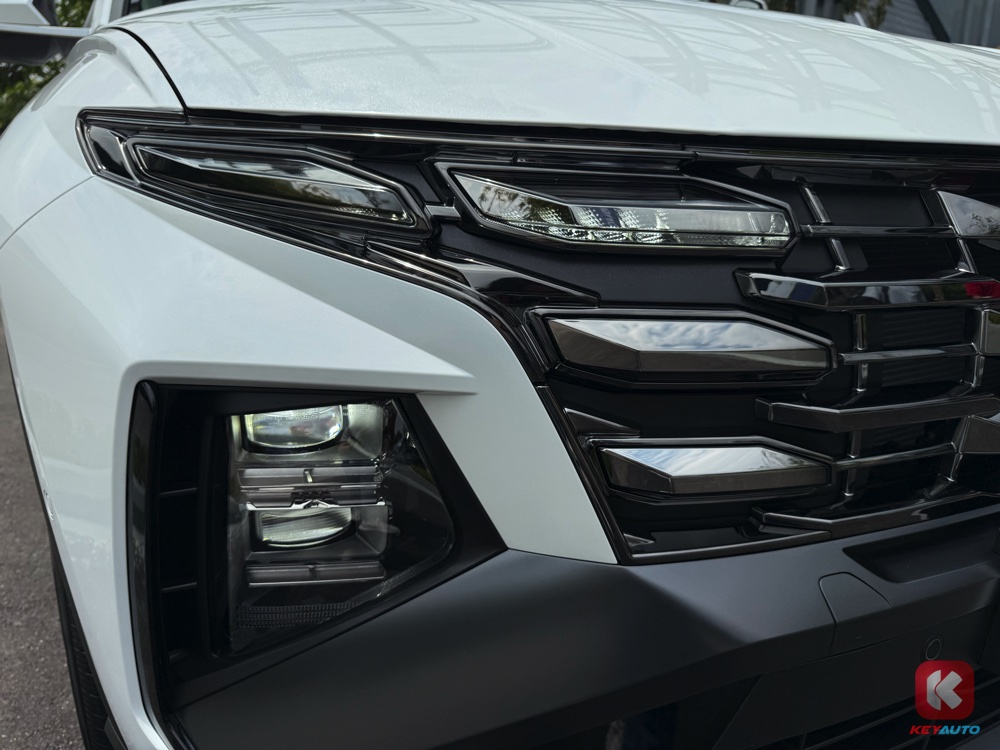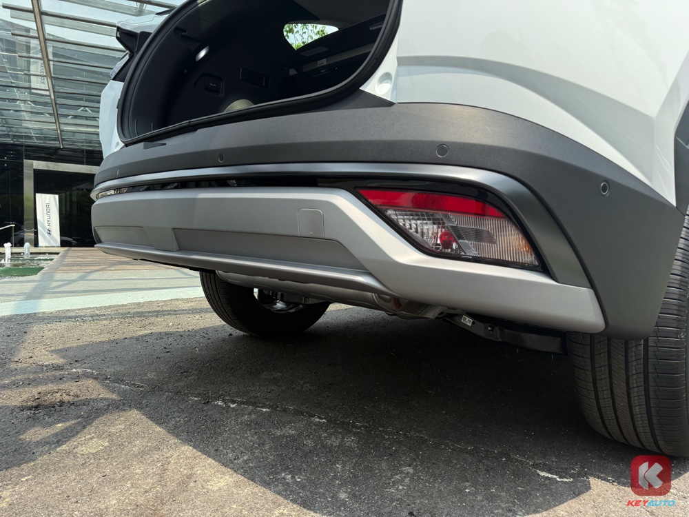 2025 Hyundai Tucson 换上格栅和前保险杆,并升级了宝石形日行灯,使整体看起来更高级。车尾是更低的银色保险杆,配上贯穿式尾灯和隐藏式后雨刷,足下是 19 寸轮圈。