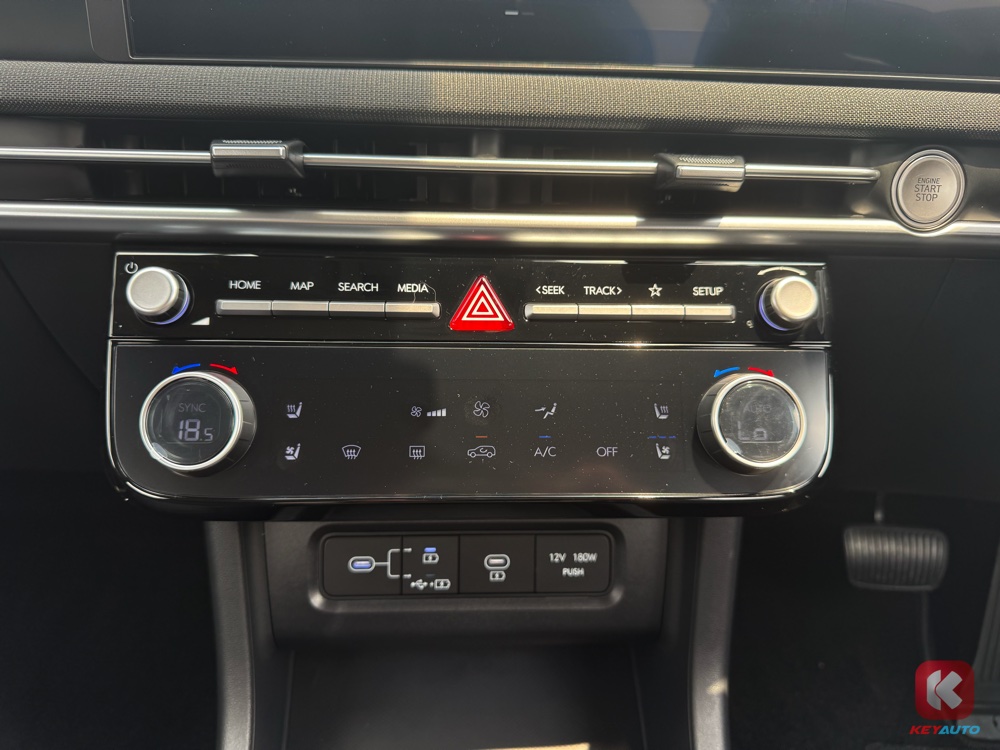 车子最明显的改变是换上了全中控台设计,原本的直瀑式的设计改为双联屏,分别是 12 寸数码化仪表板和 12 寸中控荧幕,下方则配有 6.6 寸的空调控制荧幕。车子换上新的三幅式方向盘,同时也取消了中控台上的换挡按钮,改为方向盘后方的拨杆。