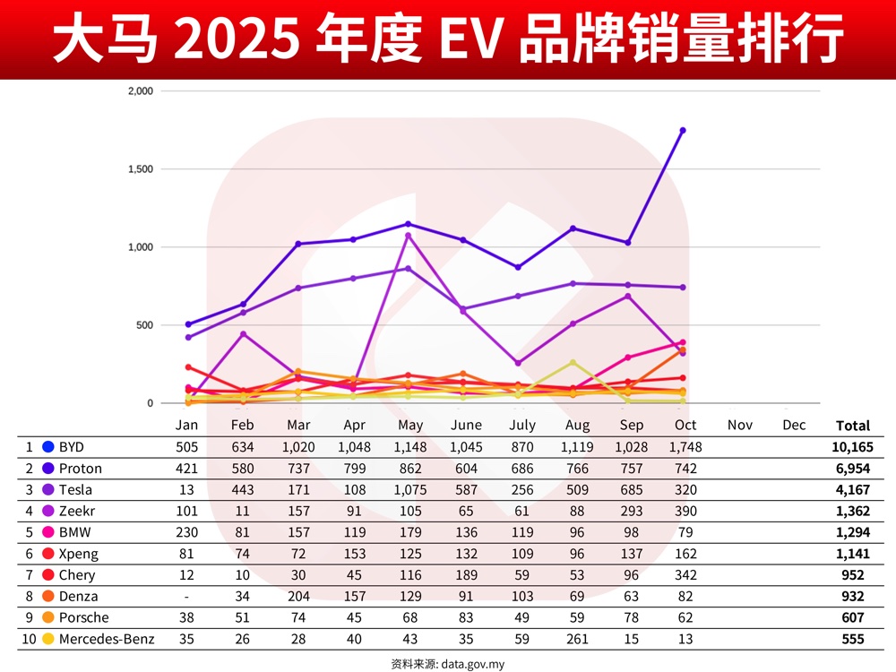 截止本月,Tesla 以 4,167 辆排在大马畅销 EV 品牌第三;至于 Zeekr 则售 1,362 辆,排在第四。