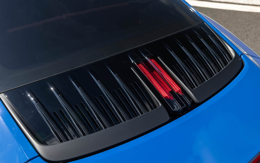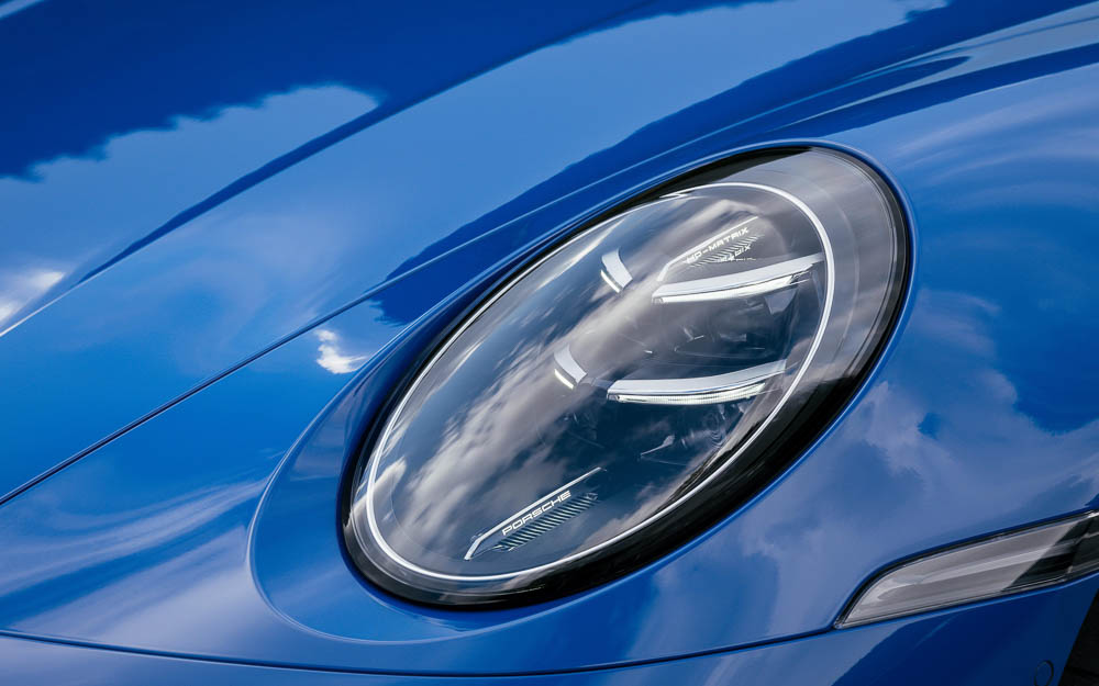 Porsche has refined the 911’s legendary silhouette with a focus on aerodynamics and functionality. The front bumper features vertically aligned active air flaps and hidden diffusers, adjusting airflow based on driving conditions to improve cooling or reduce drag. Standard matrix LED headlights now integrate all lighting functions, while the rear receives a wider stance thanks to a redesigned light strip and elevated license plate.