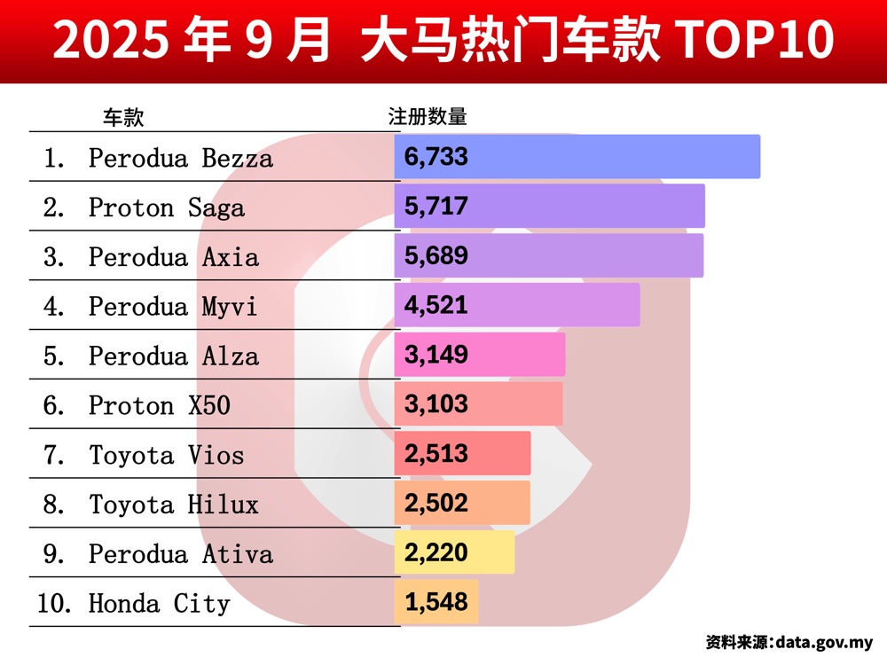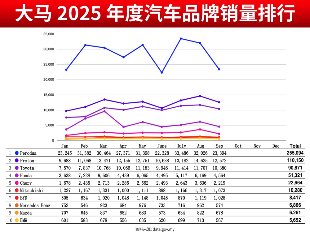 2025 年 9 月 – 大马汽车销量排行榜 Top 10