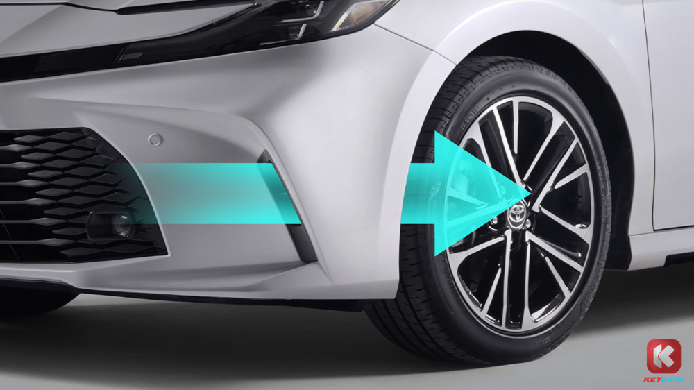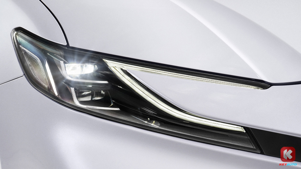 Toyota Camry 2.5V 与 HEV 版本的外观相同,依旧是锤头(Hammerhead)造型配上细长的上格栅和宽大的下格栅买车位延续锤头鲨设计。头尾灯都是 C 形设计,搭载 18 寸轮圈。