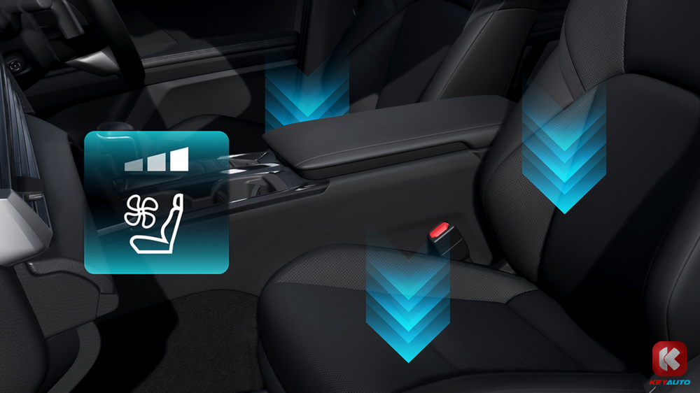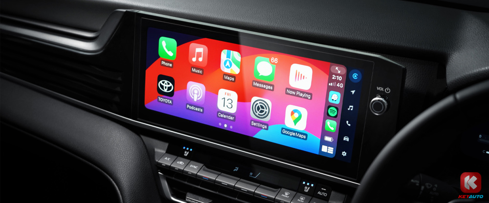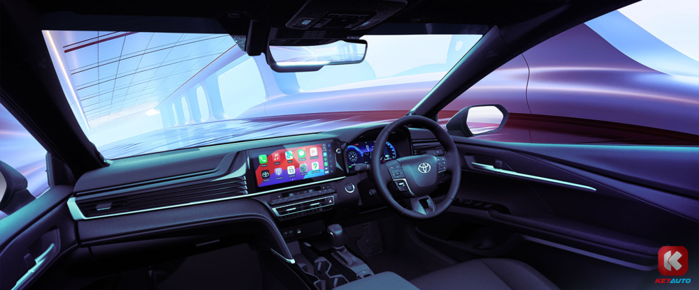 全新 Toyota Camry 标配 12.3 寸数码化仪表板、12.3 寸中控萤幕(支援 Apple CarPlay 和 Android Auto)、HUD 抬头显示器、手机无线充电面板、9 具扬声器 JBL 音响系统、前排座椅8向电动调节、前排座椅通风功能、皮革座椅等。惟 HEV 版本额外配有全景式天窗、后座座椅电动调节椅背功能和三区自动恒温冷气系统,而 2.5V 只配备双区自动恒温冷气系统,并附有墨镜收纳格。