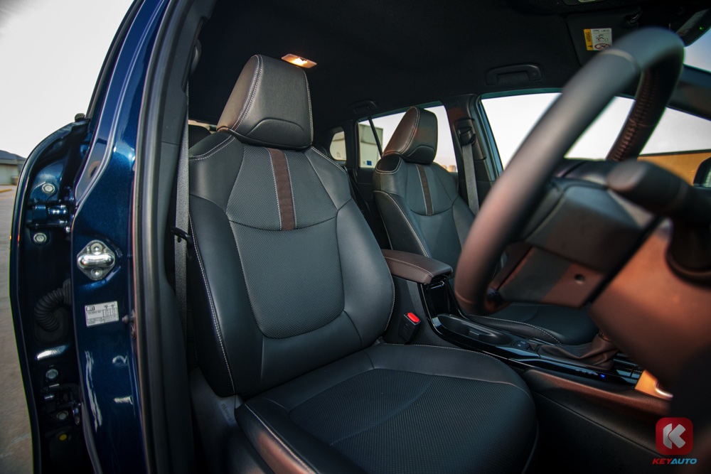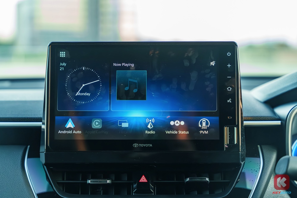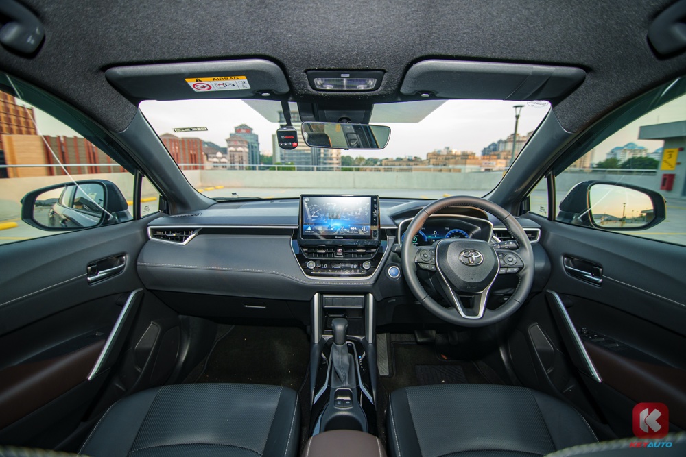 车内配备做出了不少升级,Corolla Cross Hybrid 配备了 12.3 寸全彩多功能显示屏以及升级到 10.1 寸的中控屏幕(支援 Apple CarPlay 和 Android Auto)。原本的脚踩煞车踏板改为了更符合现代设计的电子手煞车(EPB),并附有自动驻车(Auto Hold)功能。
