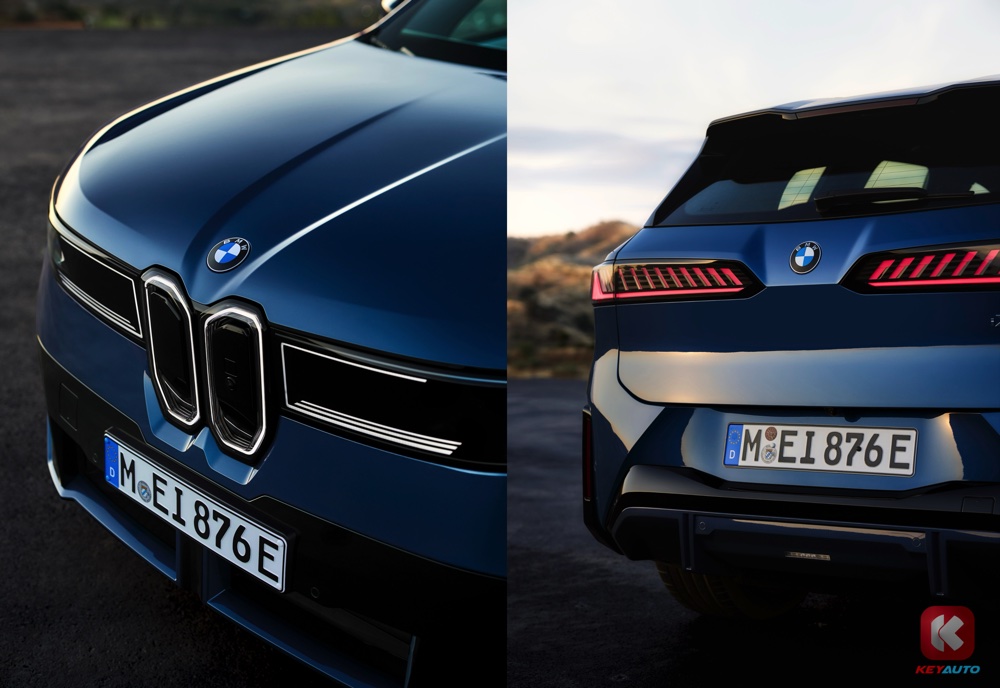 设计语言上,全新 iX3 的车身线条更内敛,窄长直立的双肾格栅正正向 60 年代 Neue Klasse 致敬。头灯改为倒钩形设计,四个轮拱保留了 X 的强悍矩形轮弧造型,车尾则是横向的 L 形设计尾灯。