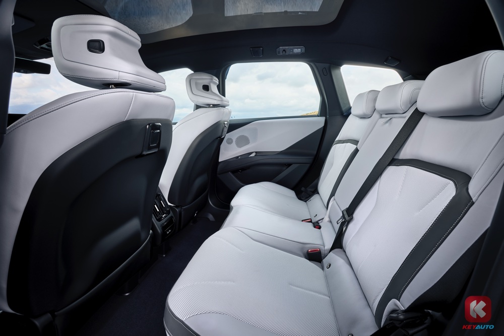 BMW iX3 50 xDrive 采用新世代 X 操作系统,配有 4 个高效能电脑核心,分别处理动态、驾驶辅助、资讯娱乐、基础和舒适功能。除了全景仪表板,iX3 也配备了手机无线充电面板、车内氛围灯、13 具扬声器的 Harmon Kardon 音响系统(支援 BMW HypersonX Soundscape 虚拟音效)、全景式天窗(没有遮阳板,但官方称有 100%紫外线防护和太阳过滤功能)。