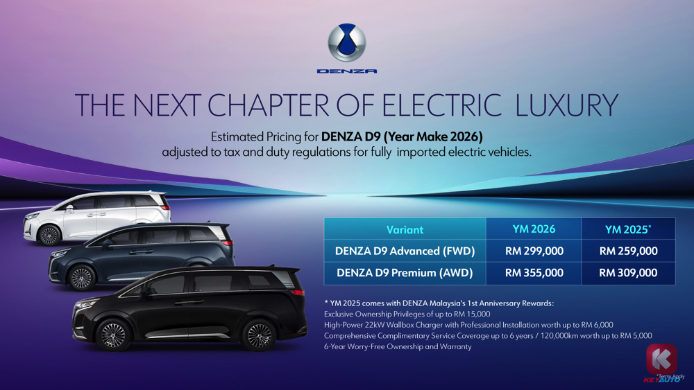 最新的 2026 D9 MPV 含税价格出炉,从 RM299,000 起,相比去年免税价上涨约 15%,原厂也推出农历新年购车优惠高达 RM15,000。