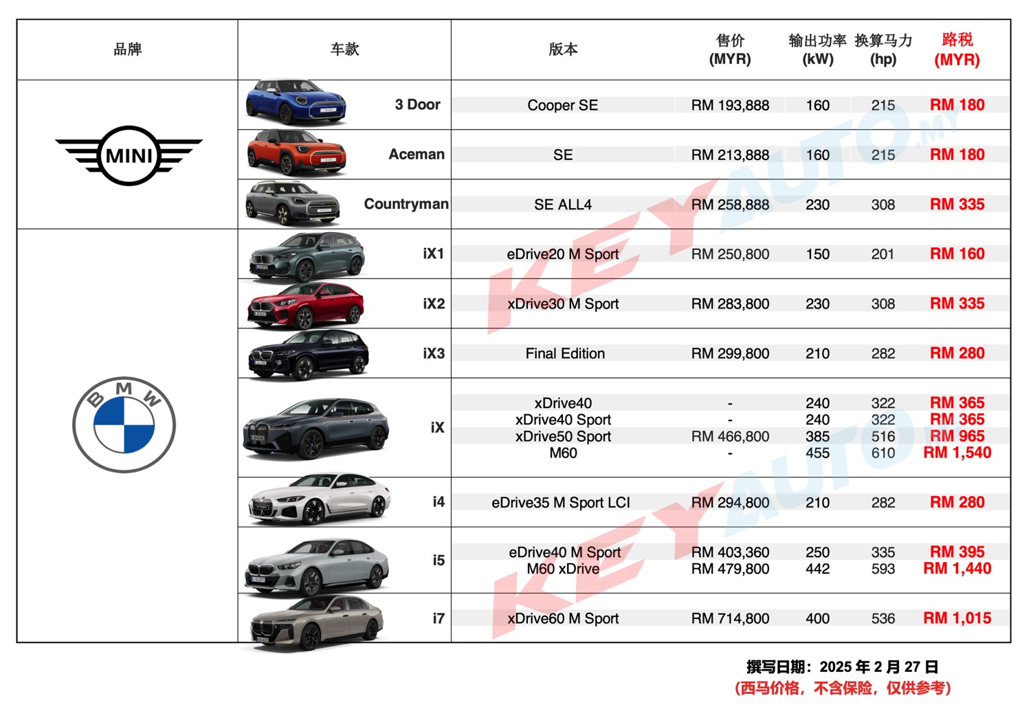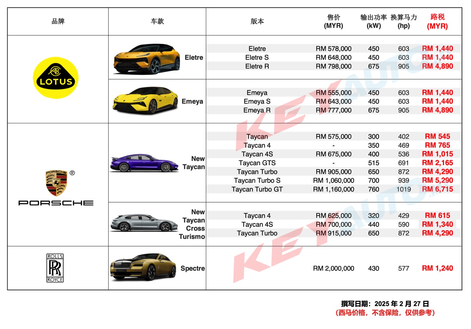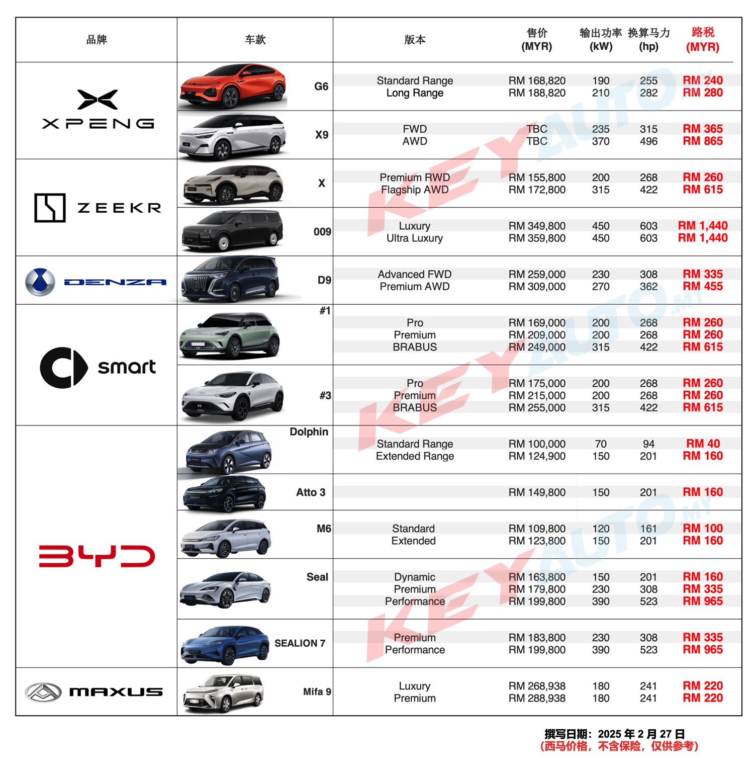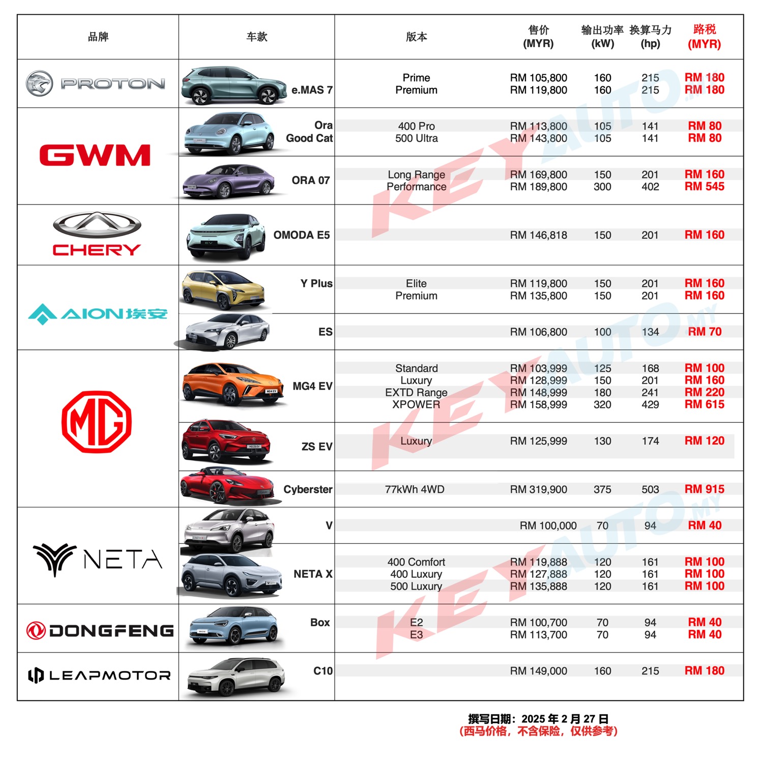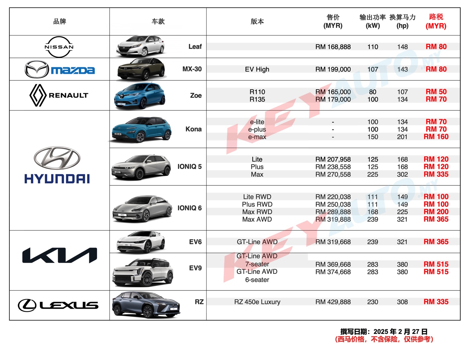 以上电动车路税基于现有的计算方式。敬请锁定 KeyAuto.my