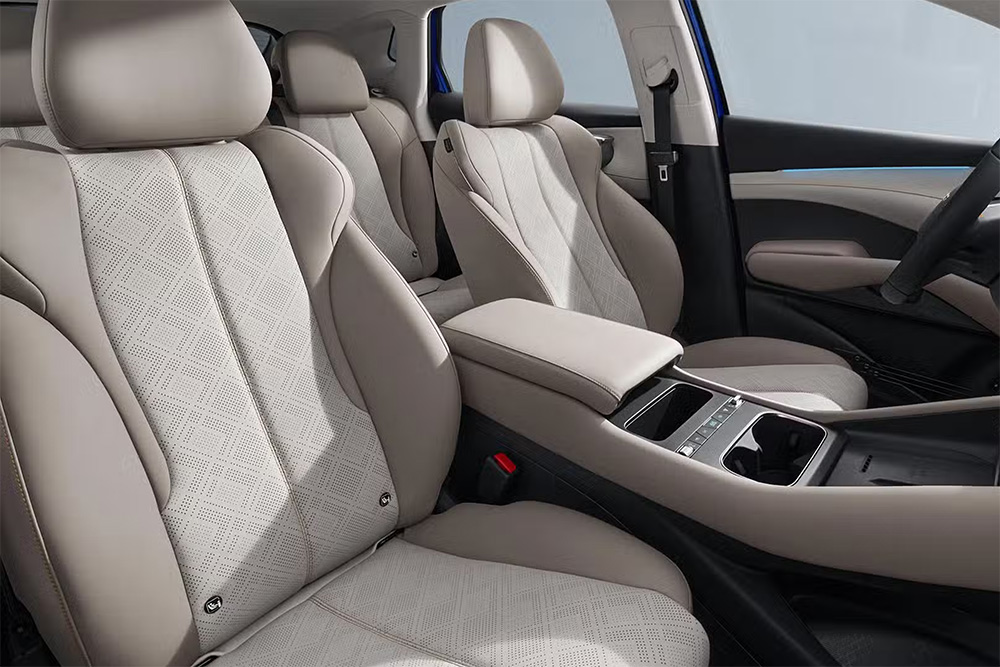 内装的部分采用了米色和灰色搭配,排挡杆移到方向盘后方,而中央鞍座也经过重新设计,配上两个置杯架、实体按钮以及 50W 手机无线充电面板。车内也搭载了 8.8 寸数码化仪表板、12 寸中控萤幕、HUD 抬头显示器、A 柱驾驶员监测系统摄像头、智能车载冰箱等。