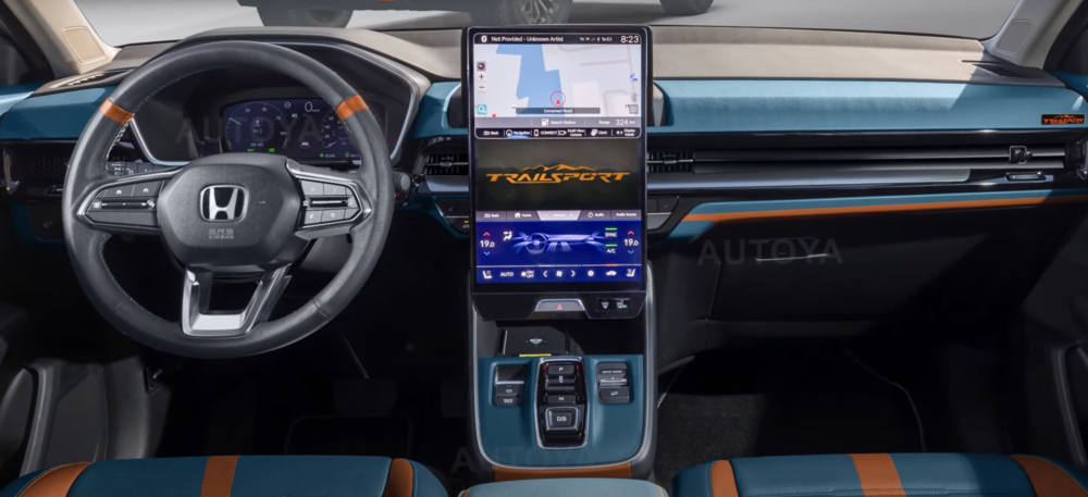 预想图中,CR-V 内装获得打升级,换上直立式中控萤幕,方向盘的2 点钟和 10 点钟方向设有橘色标记,副驾座前方也新增了 TrailSport 饰板。如果按照 Passport、Pilot Trailsport 的设计来看的话,前排座椅头枕将加上 Trailsport 字样刺绣。