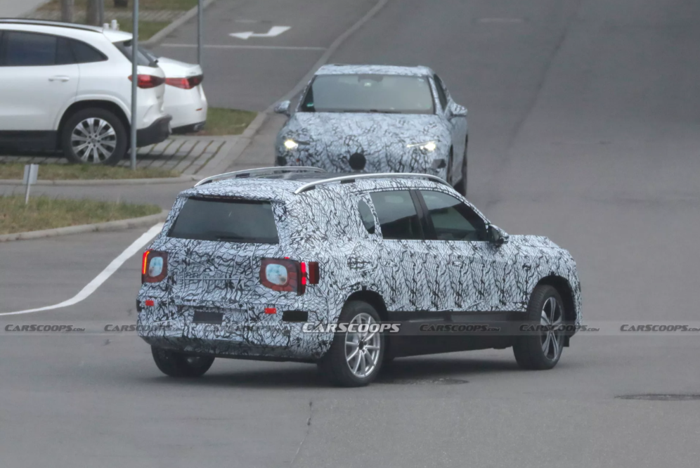 原型车上设有银色的车顶行李架以及全景式天窗。至于头灯的形状则采用类似 CLA Concept 首次预览的三芒星设计,这或会成为新一代 Mercedes-Benz 车型的外观特色。尾灯则延伸到后翼子板上,具体形状被伪装贴膜遮盖了。