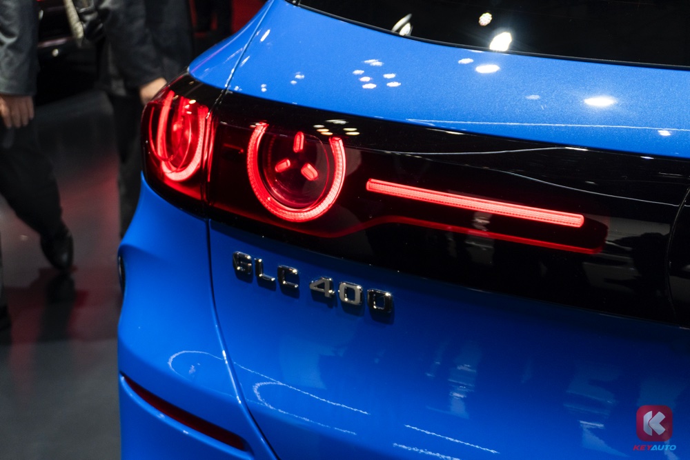 全新 GLC 前脸换上了重新设计的新标志,发光的水箱护罩由镀铬边框和网状结构形成充满未来感的视觉效果,两侧则是三芒星头灯。其车身尺寸比前代车型来得要大,为 4,845 x 1,913 x 1,644mm,轴距 2,972mm,剑指全新 BMW iX3。