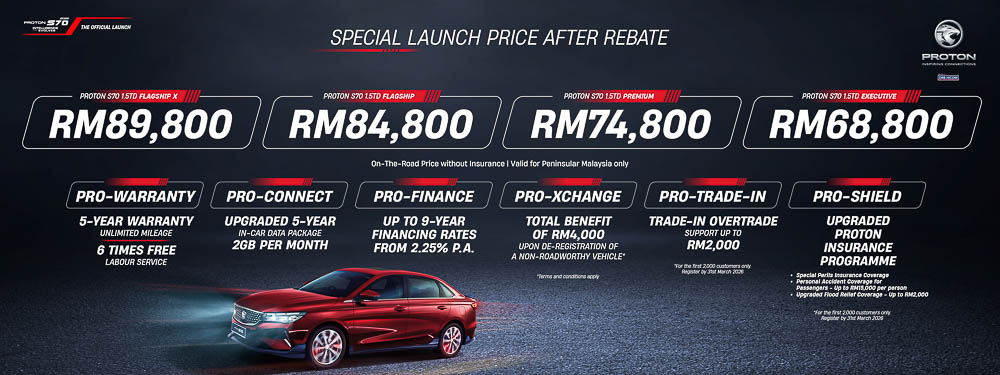 To celebrate the launch, Proton is offering a Special Launch Package to the first 2,000 customers who register their vehicles by 31 March 2026. This includes a RM5,000 rebate and additional ownership benefits, further strengthening the S70’s value proposition.