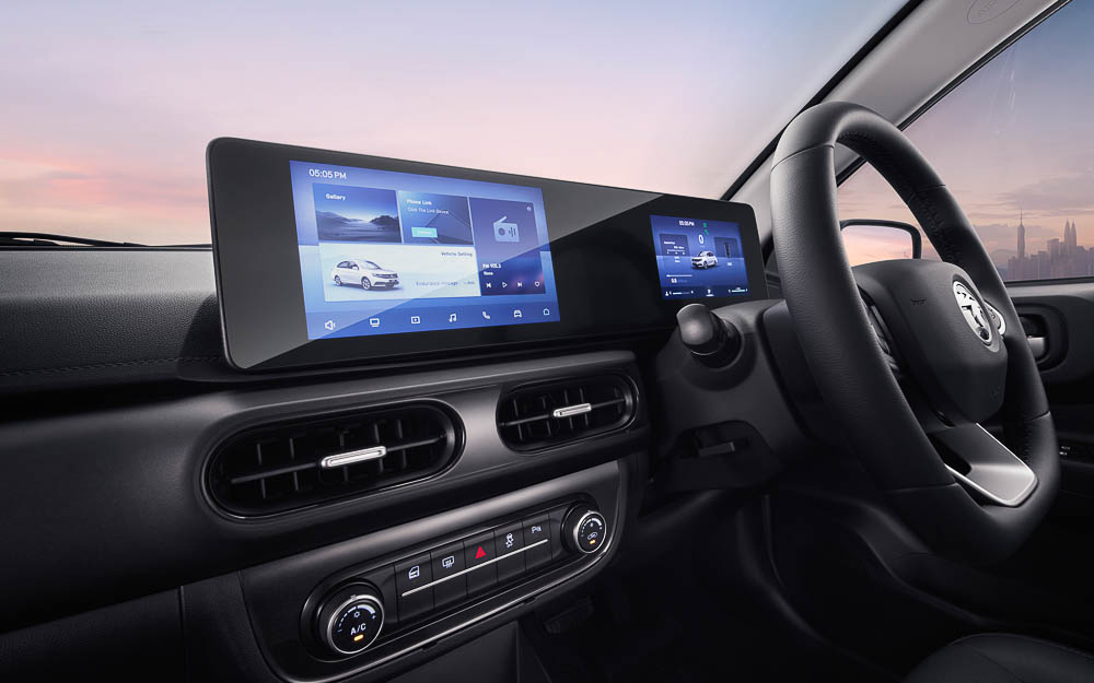 Optimised Intelligence: A 16-inch integrated dual screen supports wireless Apple CarPlay and Android Auto, while smart convenience features such as auto headlamps, Follow-Me-Home lighting, and headlamp leveling enhance everyday usability.