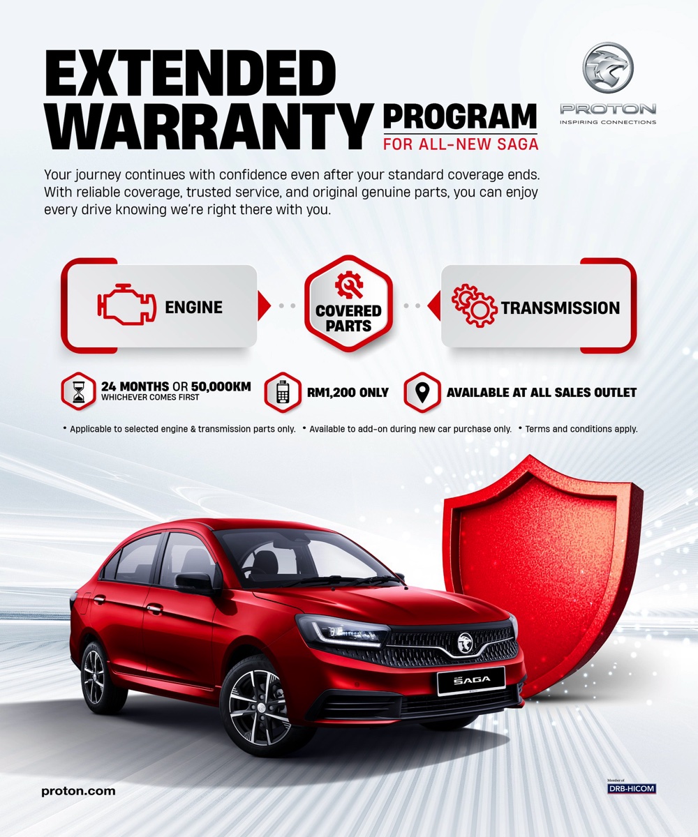 Proton 宣布,去年底登场的全新 Proton Saga 推出额外延长保固配套,车主仅需加价 RM1,200 即可获得额外 2 年/50,000km 保固。