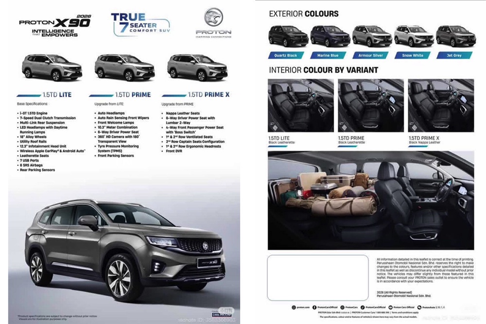 根据泄露的宣传册子,小改款 Proton X90 规格配备如下: