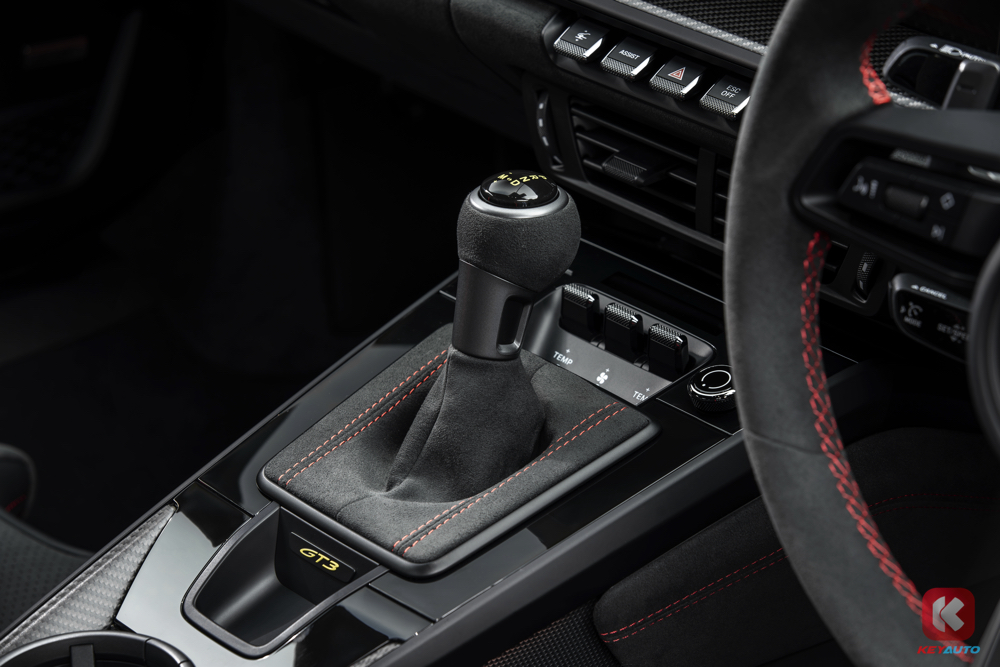 为了弥补扭矩下降,现在两种变速箱(7 速 PDK 或 6 速 MT 手排)的最终传动比都缩短了 8%,0–100km/h 加速成绩 3.4 秒(MT:3.9 秒),极速 311km/h(MT:313km/h),前者搭配电子限滑差速器,后者配机械限滑差速器。