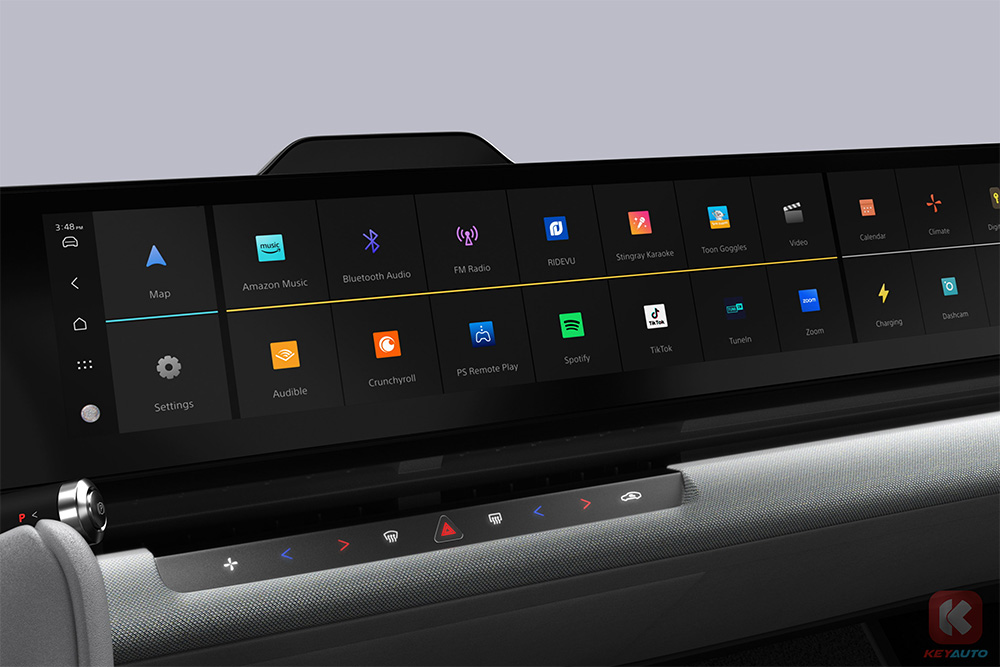 Afeela 1 的最大亮点在于其高度软件化与数码化的车舱设计。车内配备横贯式全屏幕仪表台,并深度整合 Sony 的娱乐生态系统,支持 PS Remote Play,可将家中 PS5 或 PS4 的游戏串流至车内屏幕游玩,让车辆在充电或休息时化身为移动娱乐空间。