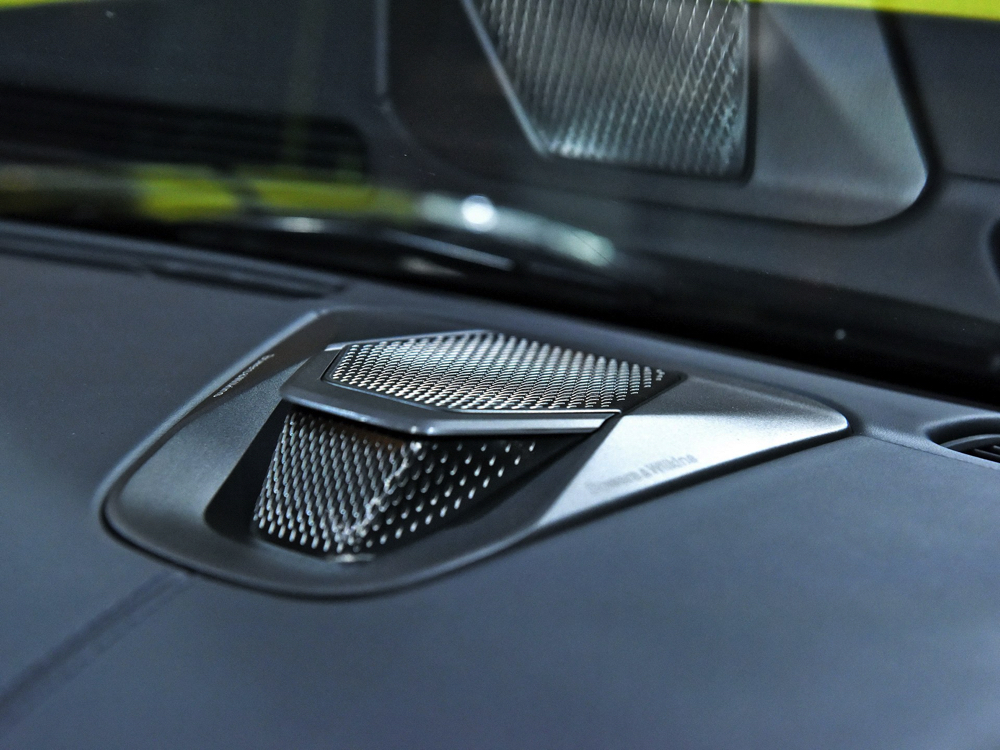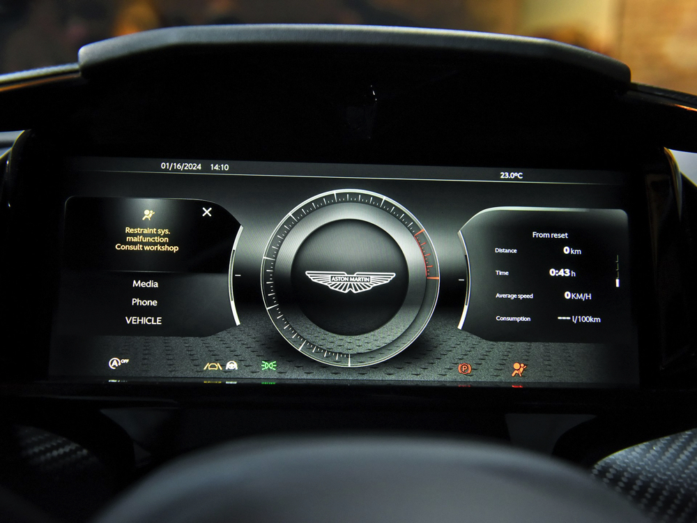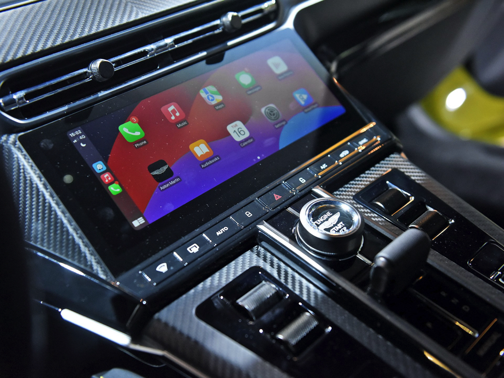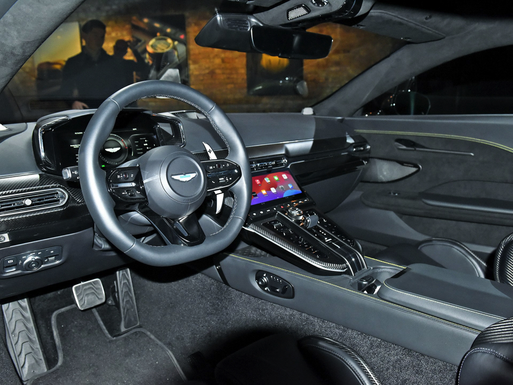 进入内装,沿用 DB12 的布局,加入大量碳纤维饰板和跑车座椅,配备 10.25 寸仪表盘和中控屏,内建新一代信息娱乐系统,标配 Bowers & Wilkins 的 390W 音响系统。