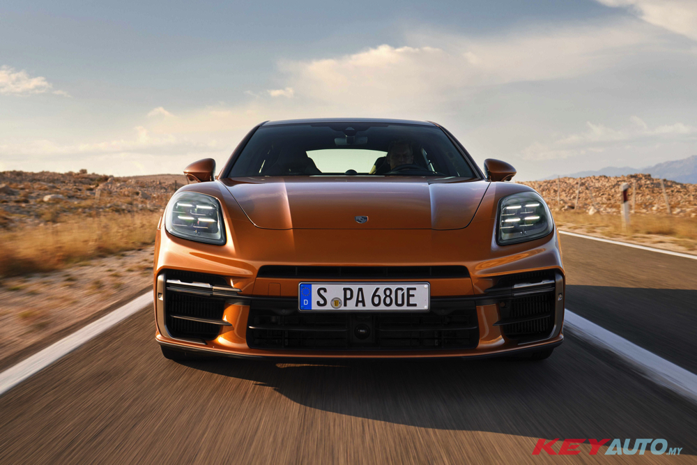 Panamera Turbo E-Hybrid 则搭载全新油电混动系统,获得全面优化的 4.0L 双涡轮增压 V8 引擎,配上一颗全新 P2 电动马达,综合输出高达 680PS/930Nm,0-100km/h 加速只要 3.2 秒,极速可达 315 km/h,在 E-Mode 纯电模式下最大续航 91km(WLTP)。