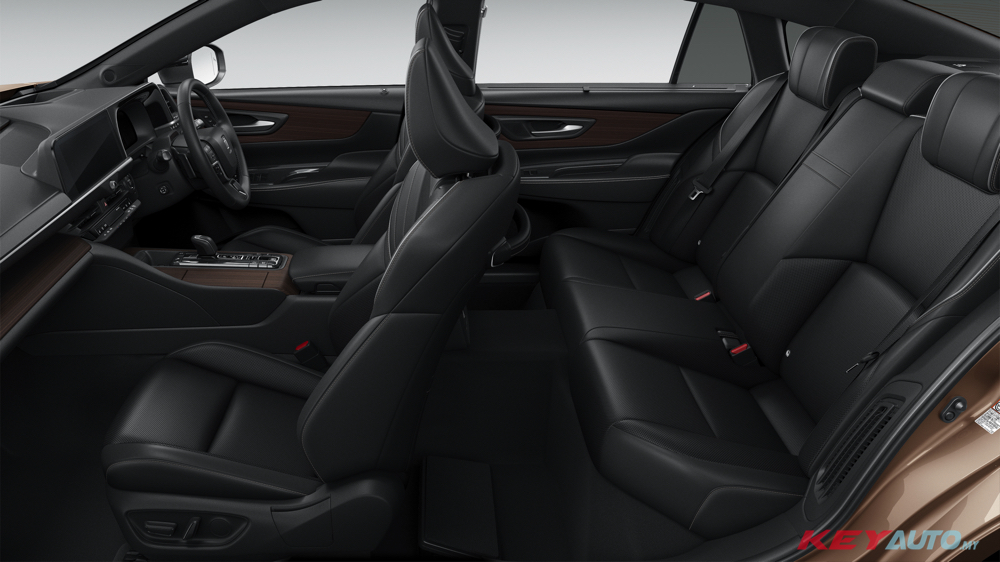 内装延续了 Crown 家族设计,配备双 12.3 吋荧幕、电子排档杆、电子手刹车等,而 Crown Sedan 加入大量的木纹饰板、高级皮革、64 色气氛灯,进一步提升整体座舱质感。