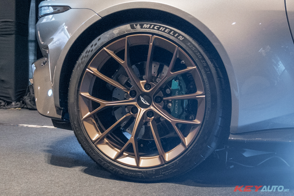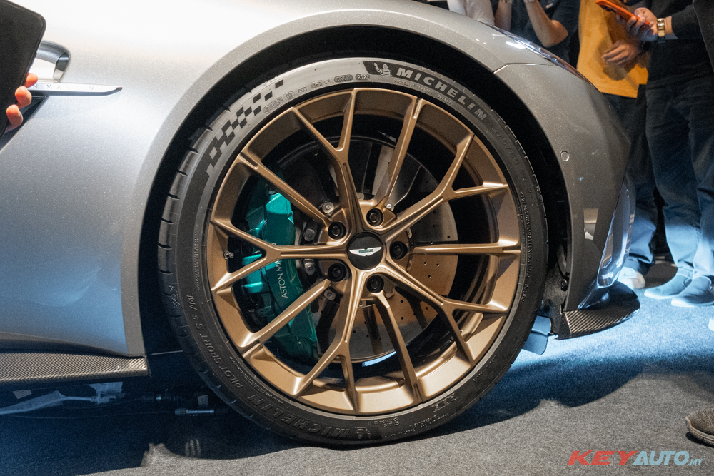 The new Vantage comes equipped with 21-inch forged aluminum rims and Michelin Pilot Sport S 5 tires as standard (275/35R21 front, 325/30R21 rear), while customers have the option to upgrade to CCB Carbon Ceramic brakes.