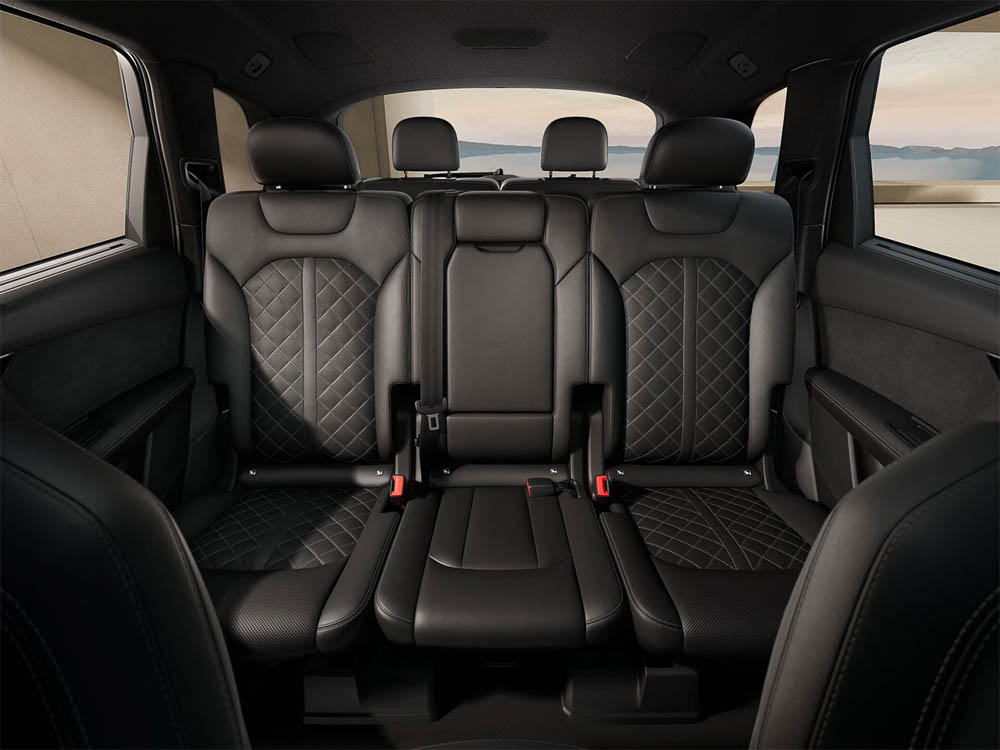 Inside, the Q7 is every bit as luxurious as its exterior suggests. With S line Valcona leather Sports Seat Plus, ambient lighting in 30 selectable colours, and a spacious three-row configuration, the Q7 is tailored for both comfort and versatility. Whether you're navigating city streets or embarking on long road trips, the second-row adjustable seating and easy-access third row make it a true family-friendly luxury SUV.
