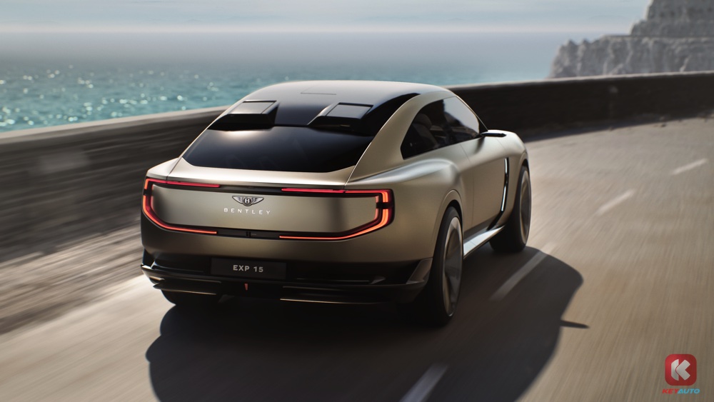 Bentley EXP 15 启发自 1930 年代Bentley Speed Six Gurney Nutting 三座车型。外观是标志性的直立式水箱护罩,配上修长的引擎盖和座舱,整体车身长度达 5m。不过车子并非一味的复刻,而是配上了现代化照明科技和主动空气动力学元素,包括两侧四条超薄灯带组成的头灯、前轮拱后方各有一对厚实的通风口、后挡风玻璃上的扰流板、车尾下方的主动扩散器等。