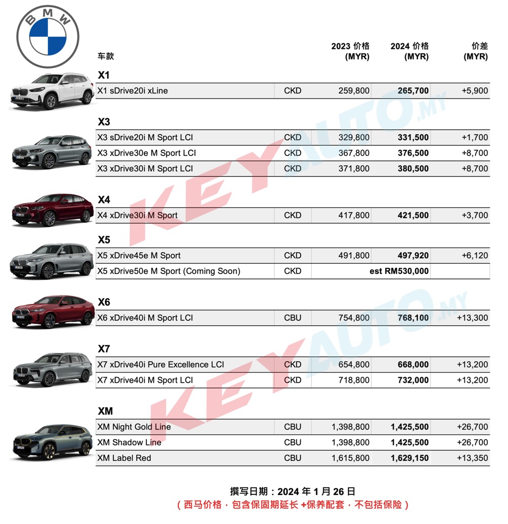 【官方】大马 BMW 2024 新价格表:涨幅高达 RM26,700!