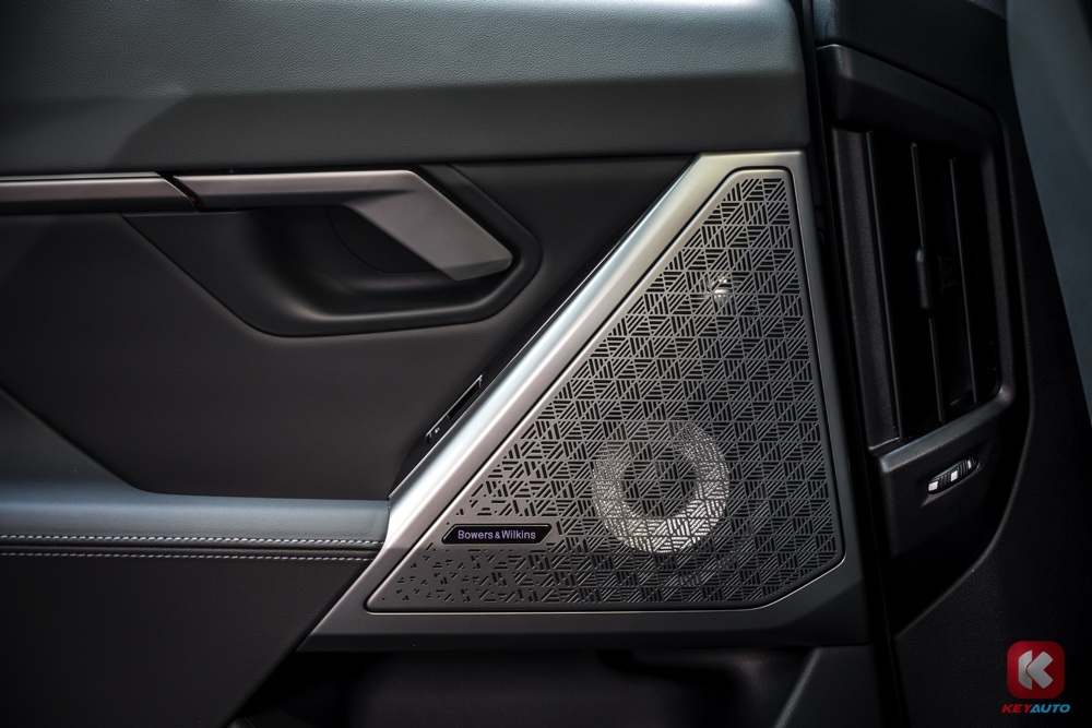 内装的部分依旧是熟悉的 BMW 曲面荧幕,由 12.3 寸数码化仪表板和 14.9 寸中控荧幕组成。车内设计主要以深银色 M 饰条配上碳纤维材质和亮银色缝线为设计,标配手机无线充电面板、 BMW Individual Merino 真皮座椅、带记忆功能的电动调节运动座椅、全景式天窗、遮阳帘、四区恒温冷气系统、18 具扬声器 Bowers & Wilkins 音响系统等。