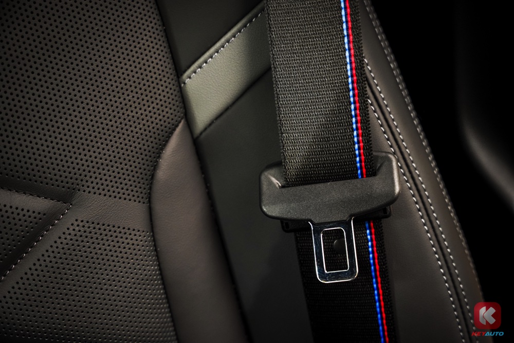 作为 M Sport Pro 车型,车内当然也搭载了 M 真皮方向盘、M 安全带以及 M 炭黑色车顶内衬。
