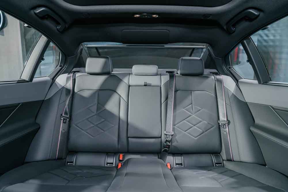 Equipped with 21-inch aerodynamic wheels from the BMW Individual line and featuring the signature Hofmeister kink, the BMW i5 M60 xDrive boasts a coupé-like silhouette. Slender LED taillights complete its luxurious aesthetic, ensuring it stands out in its class.