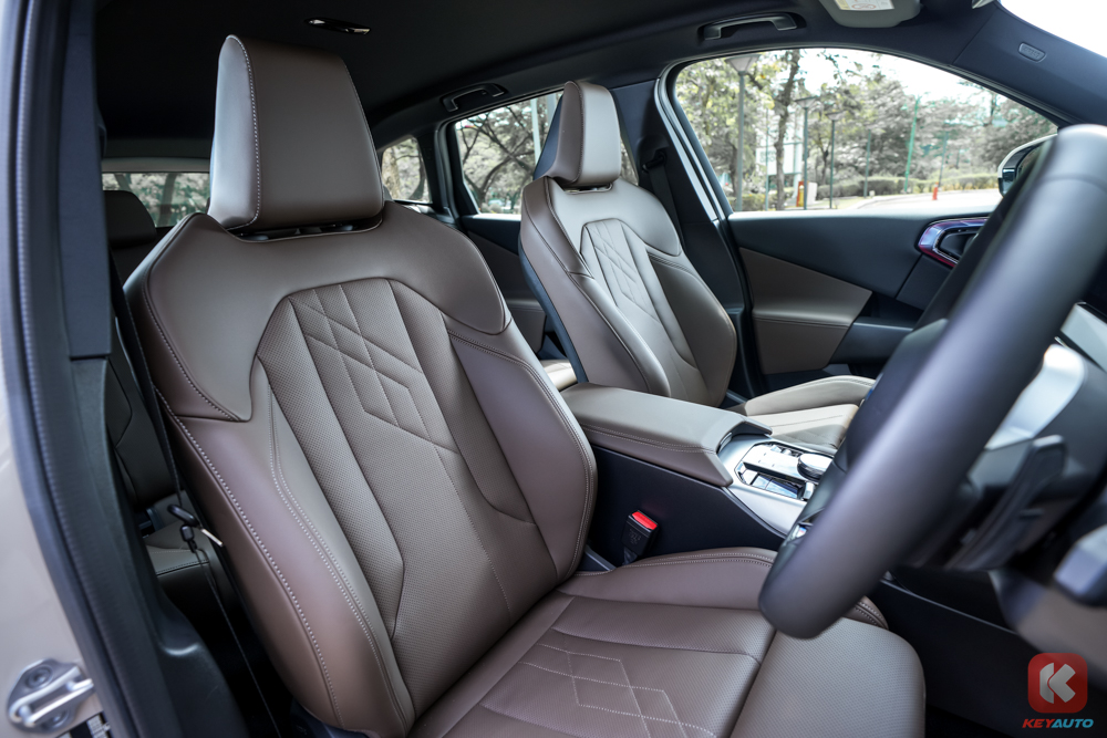 内装是由 12.3 寸数码化仪表板和 14.9 寸中控荧幕组成的曲面双联屏,内建 OS9 车载系统,支援 Apple CarPlay 和 Android Auto。其他配备包括车内氛围灯、Veganza皮革座椅、具记忆功能的电动调节前排座椅、手机无线充电面包、M Sport 方向盘、HUD 抬头显示器、行车记录器等。