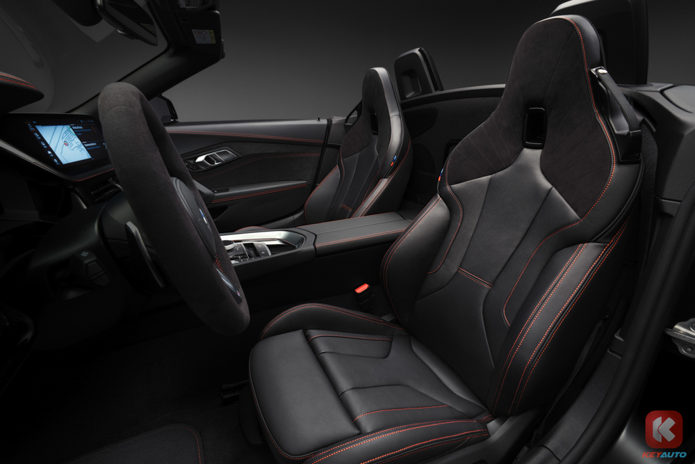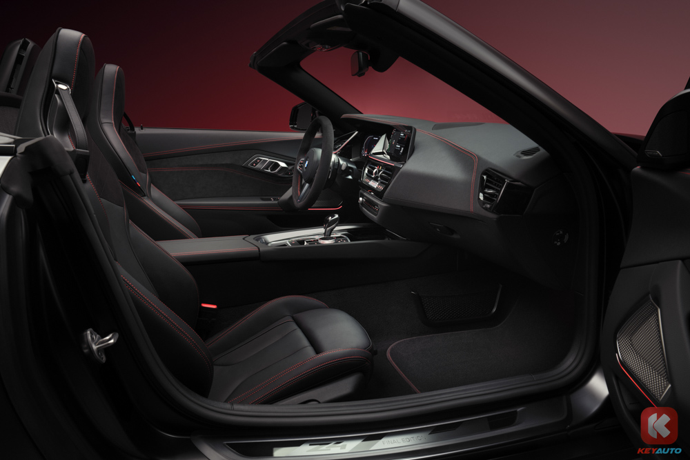 车内则以红色细节营造氛围。Final Edition 采用专属的红色缝线,从仪表台、中控台、车门饰板一直延伸到运动座椅,还有 M Alcantara 方向盘。门槛饰板也加入 “Final Edition” 铭牌,凸显这是 Z4 车系的「终章特别版」。
